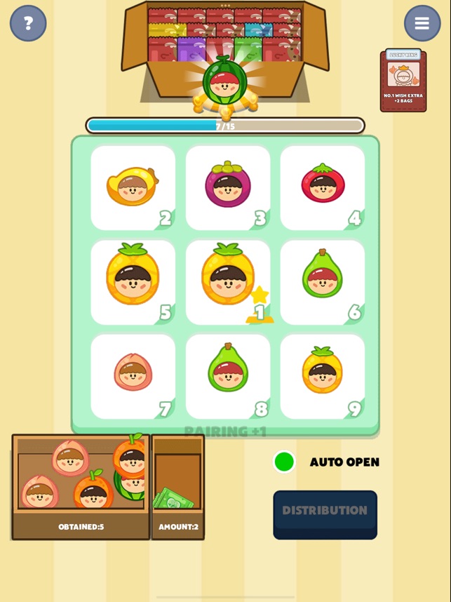 Blind Bag Game is a lighthearted and fun game that brings endless joy to players of all ages! It recreates the thrilling and exciting experience of livestream blind bag unboxings, combined with unique features and surprising rewards. *How to Play: - Choose your goal and the number of blind bags: Before starting, players can select their target (goal). - Tear open each blind bag: Players open the bags one by one to uncover what’s inside. + If you find your goal: You’ll receive an extra blind bag. + If you uncover any pair: You’ll also get an extra blind bag. - Continue opening bags until you run out of them. *Highlights: - No skills required, just luck: This game is entirely based on chance, making it a relaxing activity that requires no thinking. *Exciting Features: - Triple Combo: Activate when three bags of the same color appear, based on the rules of each mode. - Family Portrait: Collect all different colors on the table. - Clear the Table: Remove all the charms on the table. *Support Cards: Players can collect and use special cards to increase their chances of earning extra bags and coins. *Experience: Immerse yourself in the thrill, surprises, and small joys of tearing open each blind bag. With Tear It Open: Blind Bag Game, the fun always lies in the unknown!