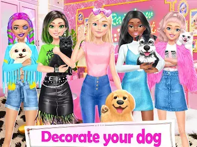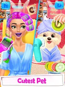Experience a fun girls' pet salon game! You can do manicures, nail trimming, and makeup for each dog and girl.