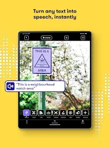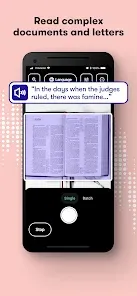 Simply use your phone camera to scan any piece of text, your surroundings, objects, people or products and everything will be read out to you thanks