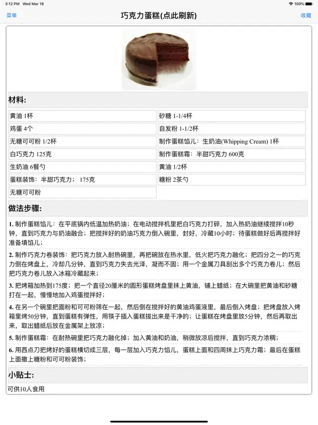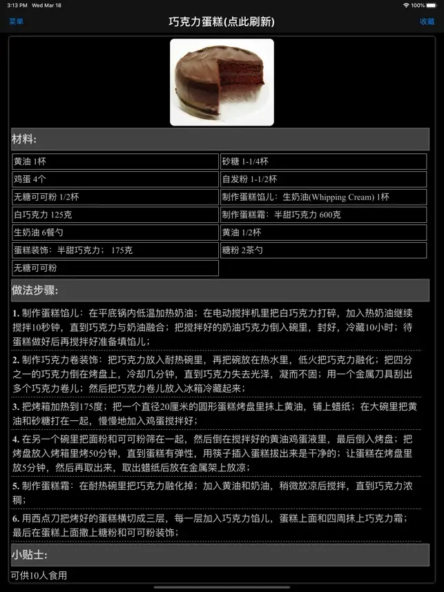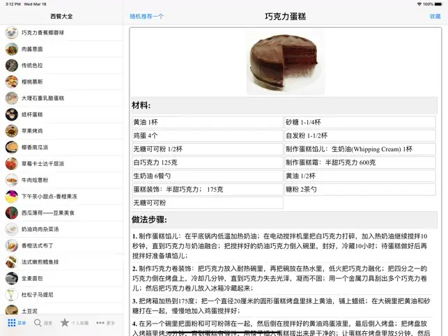 Native iOS interface, perfectly adapted. The most concise and refreshing collection of Western recipes, offline data, compatible with all devices. One-tap favorites, shake to randomly select a recipe, supports full-text search.