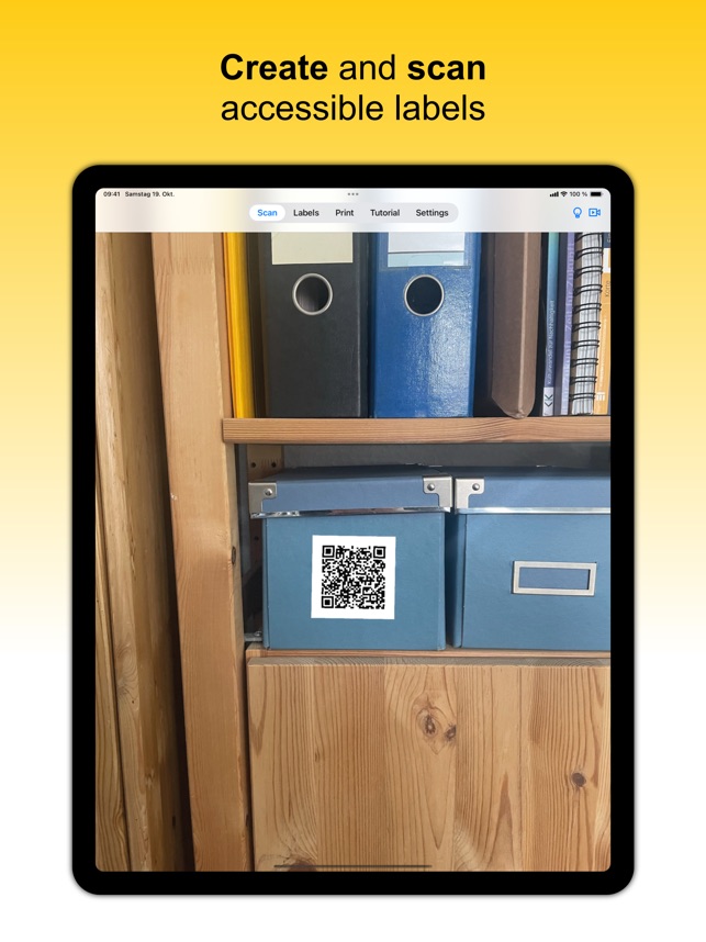 Create and read accessible labels for the blind and visually impaired. Use the app to generate QR codes that you can print out on inexpensive adhesive labels and then attach to any objects. Scan the QR codes with the camera of your iPhone or iPad and link them to texts and voice recordings. When a label is scanned again, the previously stored content is played back. Thus, the app can represent an alternative to expensive hardware solutions.