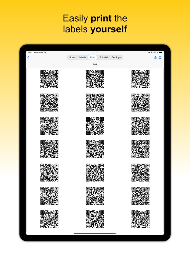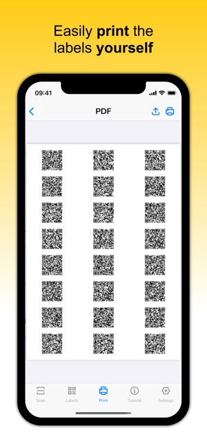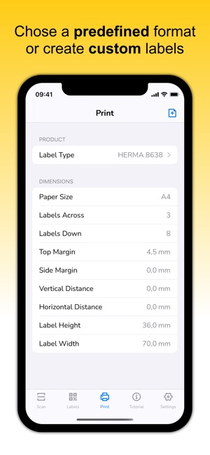 Print the labels yourself with a normal printer on standard multipurpose label sheets or use a suitable label printer. Pick from predefined formats or create your own label format. You can also share the generated documents with someone to help you print them.