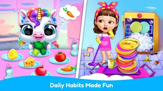 Daily chores can be fun! With interactive cleaning and decorating activities, kids learn to finish tasks, take responsibility, and care for thei