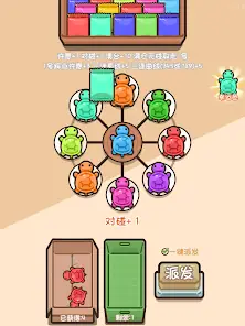 By opening mystery boxes, you obtain turtles of various colors. Score points by matching turtles of the same color or lucky colors; talents help you earn additional rewards.
