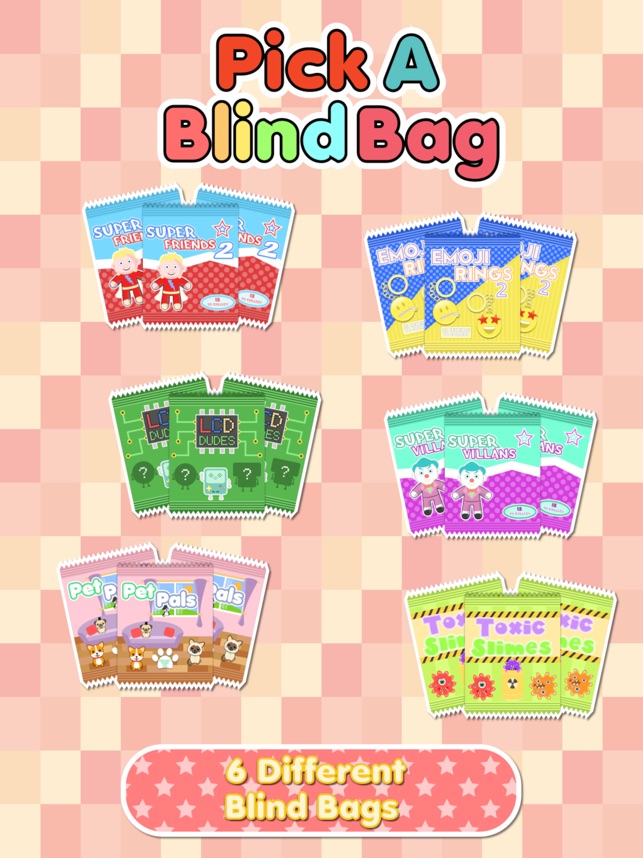 Blind Bag Surprise 2 brings even more blind bag prizes than ever before! Blind Bag Surprise 2 a toy collecting game where you get to unbox as many bling bags as you wish, where ever, whenever you like. No need to travel to your local supermarket or grocery store or use vending machines to get your blind bags no more. What you get is a total mystery until you unbox it! What will you find in your lucky capsule bag, can you Collect them all!! All new 6 different Blind Bags including, Cute animal dolls, lol surprise emoji key-rings, Superhero squishy figures, and gooey toxic slimes. Blind Bag Surprise 2 is part of the Surprise series including the toy egg surprise games. Blind Bag Surprise 2 is totally free and is a great game for kids of all ages!
