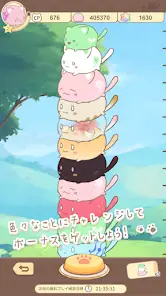 3. Play a cat-stacking game using your collected Mochinekos! The more you collect, the higher you can stack!
