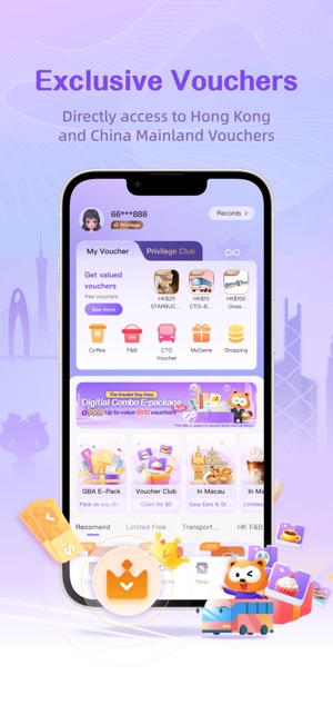 ● Vouchers market: You can order local rights and interests in Hong Kong, such as coffee coupons, Ocean Park discounts, etc., and can also easily order rich mainland rights and interests, such as tea, bus, massage, etc., to meet users' diverse needs for living in the two places.