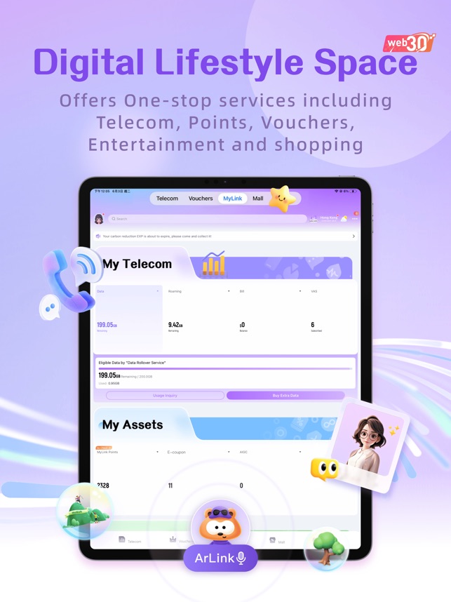 ● Ar Link Notification: You can not only visually view their prepaid SIM card and billing information, but also view mall orders, transportation orders, data usage and other communication notifications.
