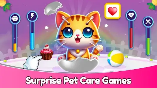 Hatch eggs to bring adorable animals like bunnies, kittens, and puppies into the world. Feed your pets, give them baths, and train them with potty training tasks. Enjoy realistic animal sounds and watch your pet grow and thrive as you care for it.